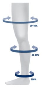 Wearing graduated compression stockings or compression socks daily will help with the management and will reduce the progression of venous disorders. How does it work; the contraction and relaxation of the calf muscles around the veins aid in moving blood towards the heart. The external graduated compression stockings act as a layer of muscle by gently squeezing the stretched vein walls together, allowing the valves to close. The cavity of the vein is reduced thereby restoring blood flow to a normal state and aiding overall circulation. To be most effective, the compression stockings or socks should be put on at the start of your day and removed before you go to bed.